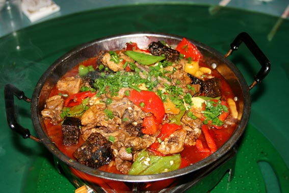 說到吃,鳳凰的苗家土雞、苗家臘肉、酸魚和血粑鴨是一定要嘗嘗的。苗家自釀的糯米酒每頓也要喝幾杯,雖然甜甜的,但后勁很大,要小心。臨走時(shí)可以從飯館買上10來斤酒和一些臘肉。早晨7~9點(diǎn)時(shí),沿著東門內(nèi)的東正街往里走有個(gè)吃早飯的地方,生意火爆。店主人是一對(duì)夫婦,在門口賣米線、面、包子、煎餃、豬耳朵、豬頭肉、豬肘子、鹵蛋。