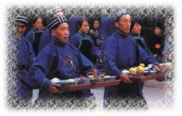 指著圓符,不久,蒙面者便神魂入定;似有神附體,慢慢地全身抖動起來,手舞足蹈,這就是已“進入陰間”。據(jù)傳過陰之人,雖蒙頭蓋面,也能辨別方向,隨法師的指使行事,陰間之事能有問必答,人們所要了解之事,也都從他們那里得到答復,并可以探求禳解之法。法師用法術(shù)指使他們?nèi)プ龈鳂邮虑?。到一定時間,法師用咒語報他們招回,他們在法師的指示下,陸續(xù)返回陽世清醒過來。若有個別不能返回,法師則加倍對他們施法,用刀指向他,并念咒畫符,強令返回。過陰之人蘇醒后,法師揭開頭蓋,這時個個面色慘白,目光遲鈍,如害一場大病。法師再施以復原之術(shù),使之慢慢復原。他們復原后,完全忘記陰間的事情。