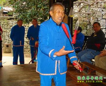 三棒鼓,唐代稱三仗鼓,明沈行符《顧曲雜言》 曰:“吳下何來有打三棒鼓乞錢者,余幼時(shí)有見之也, 起于唐咸通中(公元865年)”約于明代傳入本境, 并逐漸成為群眾增聞樂見的民間藝術(shù)形式。每年春節(jié) ,藝人們結(jié)伴走村竄寨拜年,表演對象不分貧富,戶 戶必到。如遇貧寒之家,表演者將別家贈送禮品相送 ,意在人人過節(jié)歡喜。充分體現(xiàn)出土家族人熱情好客 ,心地善良的民族性格,對加強(qiáng)民族團(tuán)結(jié)有一定作用 。 三棒鼓通常由三至五人組成,一人擊鼓唱詞,一 人鑼鈸配樂,一人?;ò??;ò羧?,長一尺,舞者 左右手各持一根,將另一根拋在空中,左右開弓,擊 打空中花棒使之不落地。也有以刀代棒,以五刀代三 棒的技藝。技藝高強(qiáng)者,突然把刀拋得極高,來一個(gè) 眼花繚亂,不禁稱絕。打三棒鼓,通常有“鬧春耕” 、“收割打場”、“慶豐收”、“拜年節(jié)”四套,分 “鯉魚跳龍門”、“玉女穿梭”、“板巖漂灘”等項(xiàng) 目。打三棒鼓技巧性強(qiáng),表演時(shí)需高度集中,用力適 當(dāng),貫通一氣,并與演唱者默默配合。