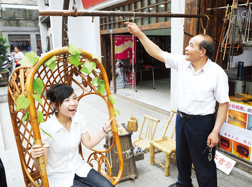歲月悠悠,蒼桑易老,蘆江八景隨同古鎮(zhèn)的式微而漸行漸遠(yuǎn),八景的美麗也由此淡出了古鎮(zhèn)人的視線。然而記憶猶存,遺跡猶在:濤聲依舊的湘江岸邊,一棵棵依然守望著碧水藍(lán)天的古柳,便收藏著當(dāng)年“柳浪聞鶯”的遺傳秘碼和鶯啼聲聲中的浪漫故事。散落在古鎮(zhèn)的街巷庭院和廢墟中依然完好的南瓜石墩,便有往日夏天傍晚的習(xí)習(xí)涼風(fēng)從石中逸出,輕聲訴說著“石礅夏涼”的美妙光景。湘江邊那座曾經(jīng)映照過船帆點(diǎn)點(diǎn)和一江逝水的樓閣,雖然雕梁畫棟已成虛而遺跡難覓,卻被作為“望江樓”商標(biāo)復(fù)活在了名聞遐邇的靖港布鞋上,讓后人依然能一睹“樓鏡瀟湘”的精致。那兩棵“七星傲月”檀和“八卦傳神”樹的奇枝妙冠雖然因蒼老而羽化登仙,盤虬蒼然的樹根卻依然鼾眠在古鎮(zhèn)天主教堂的斷垣殘椽和插花寺土堆下夢(mèng)著曾經(jīng)的枝繁葉茂和傳奇體驗(yàn)。“扇子迎客”的扇子碼頭,“獨(dú)腳鶴立”的獨(dú)腳吊樓,“梨園戲水”的臨河戲臺(tái),從它們留守在故址中的石墩、石柱、石板和巧奪天工的石雕,依然能喚起古鎮(zhèn)人從記憶深處復(fù)原出它們當(dāng)年在熱鬧繁華中的妖嬈和神圣。