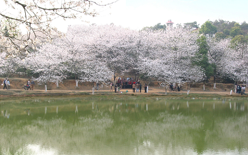 園內(nèi)山明水秀,萬木爭榮,空氣格外清新,適宜于森林療養(yǎng)和空氣療養(yǎng)。園內(nèi)的園林造景別具一格,以三湘景園為代表的人文景園,以櫻花園、珍稀蔭生植物園、木蘭園、桂花園為代表的專類園,雅致大氣,內(nèi)涵豐富。每年3月園內(nèi)近3000株櫻花競相開放,游客絡(luò)繹不絕。我園精心舉辦的櫻花生態(tài)文化節(jié)已成為深受廣大市民喜愛的踏春賞花交游的民眾節(jié)日。1992年在公園西部海拔106米的山包上,新建天際閣,高20米,4層,下為正方形,上為六邊形,翹角寶頂,黃色玻璃瓦覆蓋,朱欄畫棟,光彩照人,為南郊新添勝景。