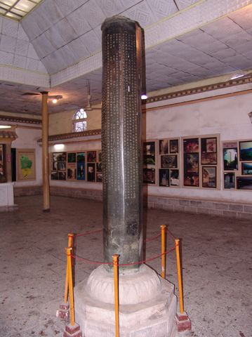 彭士愁戰(zhàn)敗后于后晉天福五年(公元940年)與馬希范議和,把戰(zhàn)爭的經(jīng)過和議和的條款,鐫刻于銅柱之上。銅柱重五千斤,高丈二尺,入土六心,形為八面,中空,內(nèi)實(shí)鉅錢,柱端覆蓋銅頂,銘誓狀于銅柱之上,立于會(huì)溪,宋天禧二年(公元1018年)重立時(shí),又羼刻了一些土官銜名。清中葉,柱上銅頂被盜,沉于江心,柱內(nèi)銅錢亦被人以飴粘錢殆盡。清光緒十一年(公元1885年),永順府知府張?jiān)鴵P(yáng)建亭保護(hù)。民國年間亭被毀。”銅柱的銅質(zhì),精純光潤;八面所鐫顏、柳體陰文,雖經(jīng)千載風(fēng)雨洗刷,霜雪蝕磨,仍清晰如初。溪州銅柱是研究土家族古代歷史的重要文獻(xiàn)。土家族視銅柱為神物。