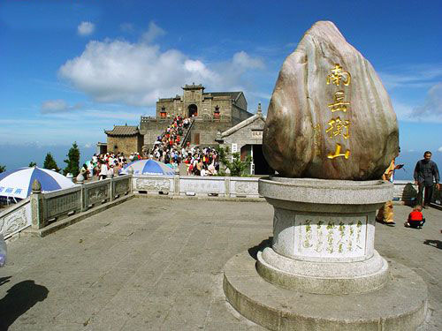 山巔祝融峰,海拔1290米,由于煙云的烘托和群峰的疊襯,構(gòu)成了"萬(wàn)丈祝融拔地起,欲見(jiàn)不見(jiàn)輕煙里"的雄姿。登臨其上,可見(jiàn)北面洞庭湖煙波渺渺,若隱若現(xiàn),南面群峰羅列,如障如屏,水面湘江逶迤,宛如玉帶,西面雪峰山頂,銀濤翻騰,萬(wàn)千景象,盡收眼底。