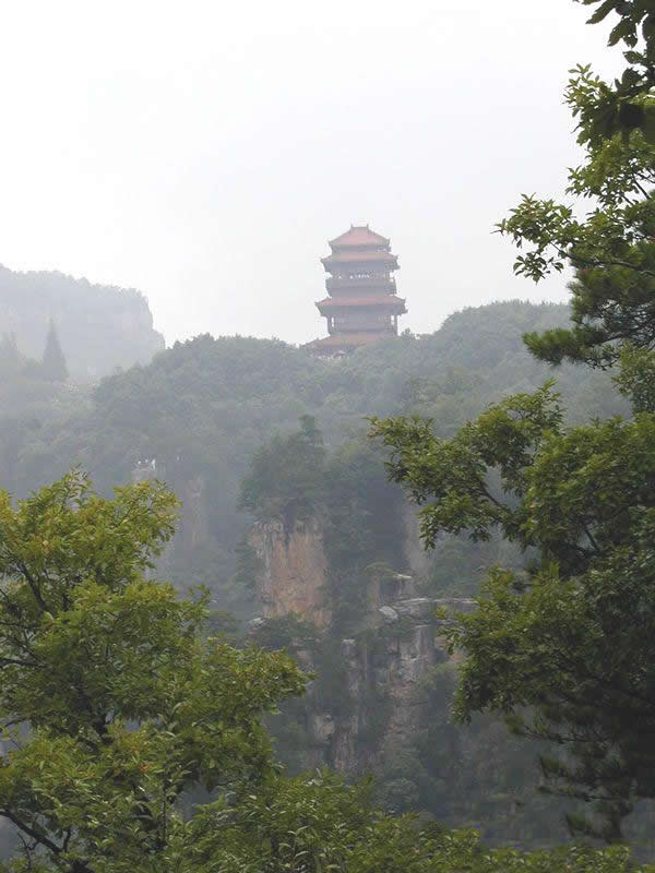 中天子廟正名“天子殿”。位于天子山中部丁心溶,坐東朝西。始建于明洪武23年(1390),復(fù)修于清同治2年(1645)。廟屬磚石木結(jié)構(gòu), 形同上天子廟,建筑面積150平方米。內(nèi)有正殿三間,供奉向王夫婦木塑金身。 廟的上端正中豎寫“天子殿”三字,下面橫聯(lián)為“奕業(yè)亙古流芳”,兩旁對聯(lián)為“向已稱王聲名赫濯三千界”;天其有子俎豆馨香億萬年”,“向王天子”亦含對聯(lián)之中。向王夫婦神像前面木牌豎寫“當(dāng)今皇帝萬歲萬萬歲”。廟內(nèi)存有清同治年間重修向王廟宇的記事石碑一塊。