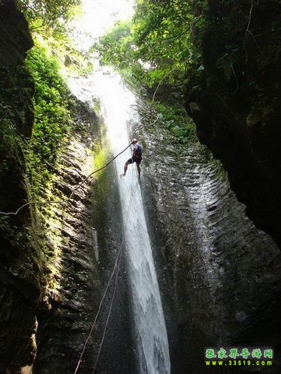 【三株稻、千丘田、靈芝沐浴】來到這里,我們發(fā)現(xiàn),游道的右邊上方,一堵弧形的石壁之上,因?yàn)榍О倌陙砥俨悸鞯慕Y(jié)果,形成了一個邊沿參差不齊的巖罩,宛若一棵千年靈芝正在沐浴,我們叫它靈芝沐浴。在靈芝沐浴的下方,也就是石壁的底部,隨著瀑布的跌落,形成了一個個環(huán)環(huán)相扣的水潭,我們叫它千丘田。在千丘田的右邊,水潭之中,竟然還生長著三棵水稻,據(jù)說這是王母娘娘專門賜給我們張家界大峽谷的。因?yàn)?,在這樣陰暗潮濕的峽谷之中,水稻是根本不可能成活的。對水稻生長有興趣的朋友,還可以在游道左邊的石凳上坐下來,休息一下,好好研究研究,這三棵水稻的成活是不是與水稻上方的那個神秘的、若隱若現(xiàn)的溶洞有關(guān)呢?