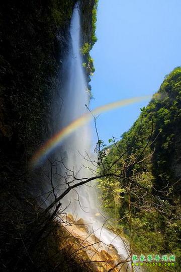 【神泉峽】有請各位朋友注意,我們行走到這里,您會發(fā)現(xiàn),峽谷在這一段猛然一下子收縮了,變得越來越窄了。這段很窄的峽谷叫做神泉峽,總長300余米。在神泉峽,我們要穿過兩處水簾瀑,請大家保護(hù)好自己的攝像機(jī)、照相機(jī)等貴重物品,以免打濕受損。同時還要注意腳下,慢慢行走,因?yàn)檫@一段的木板棧道很滑。