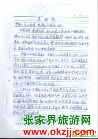 - 游客夏先生為表揚導(dǎo)游李姣姣寫來表揚信致我張家界... [14811]