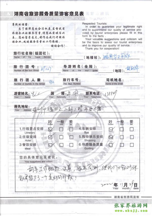 - 游客夏先生為表揚導(dǎo)游李姣姣寫來表揚信致我張家界... [14811]