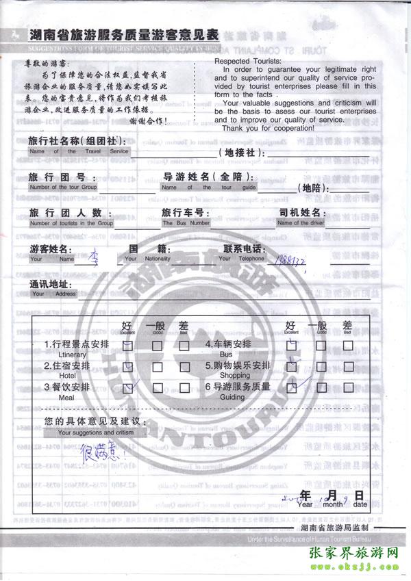 - 游客夏先生為表揚導游李姣姣寫來表揚信致我張家界... [14811]