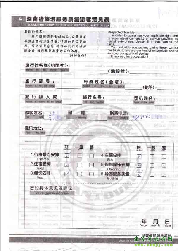 - 2011年10月26日張小姐一行18人旅游質(zhì)量反饋 [10482]