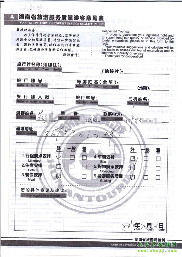 2010年10月4日范先生旅游質(zhì)量反饋