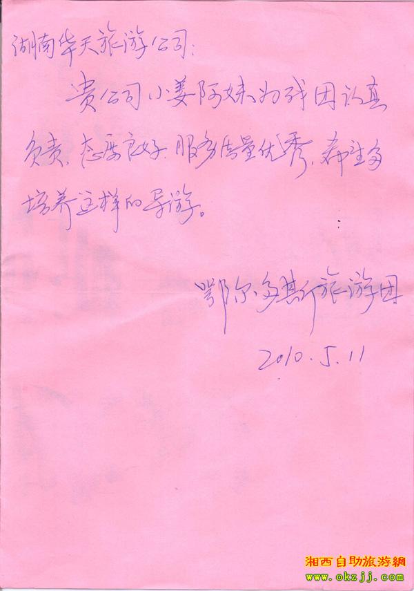 - 游客夏先生為表揚(yáng)導(dǎo)游李姣姣寫來表揚(yáng)信致我張家界... [14811]