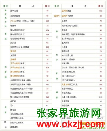 用一張更直觀的表來(lái)展示張家界旅游景點(diǎn)門(mén)票價(jià)格吧