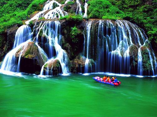 有的地方水流平緩,有的地方則湍急,一個漩窩接著一個漩渦,生活在北方的我,還有點(diǎn)暈水,看著覺的很可怕。澧水兩岸的山峰,郁郁蔥蔥,格外青翠。大自然把一個個山峰造就的惟妙惟肖,有的像官帽,有的像默默等候的神女,有的像打坐的觀音,更神奇的是有一座山竟然形成九馬畫山的壯觀。在游覽美麗景色的同時,我們也嘆服大自然的威力。張家界一路都是秀麗的風(fēng)光,讓人目不暇接。 鳳凰古城是個很小的縣城,因?yàn)樗?a class="insidelink" href="http://www.interlockingloops.com/Scenic/" target="_blank" title="張家界風(fēng)景風(fēng)光">風(fēng)景,吸引了大批的中外游客。鳳凰最繁華的西街,每天都是人頭攢動,各地的游客給張家界人民帶來了很好的經(jīng)濟(jì)收入。